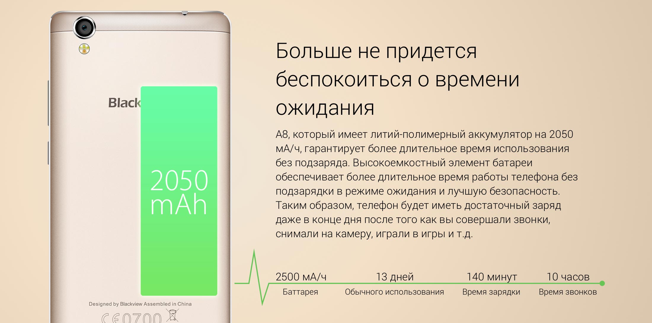 В качестве аппаратной платформы смартфона blackview a8 выступает mtk6580, производительности которой более чем хватит для среднестатистического пользователя. Объем оперативной памяти составляет 1 Гигабайт, а внутреннее хранилище данных рассчитано на 8 Гигабайт информации (с помощью карт памяти можно увеличить до 32 ГБ). Учитывая энергопотребление процессора mtk6580 и установленный на blackview a8 аккумулятор емкостью 2050 мАч, владелец может рассчитывать на то, что подзаряжать девайс потребуется раз в 2 дня.