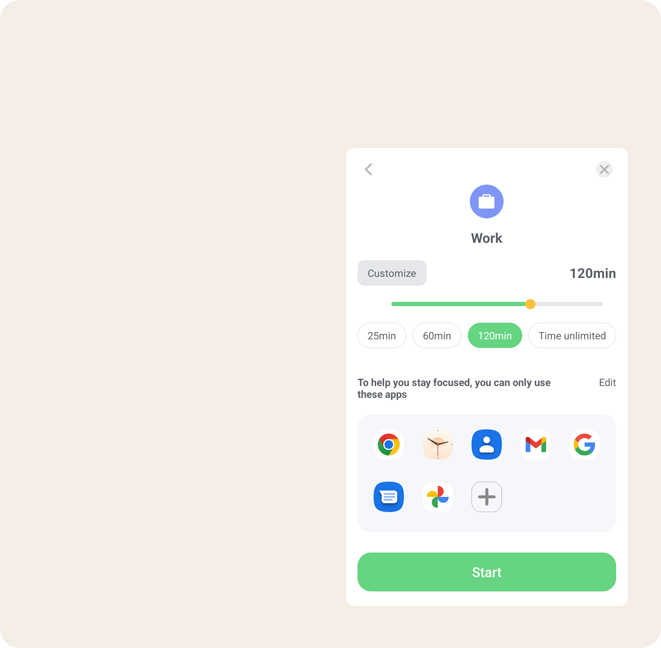 Настройте временные отрезки, когда Вы фокусируйтесь на работе, спорте, чтении, разрешите уведомления необходимых приложений в определённых периодах.