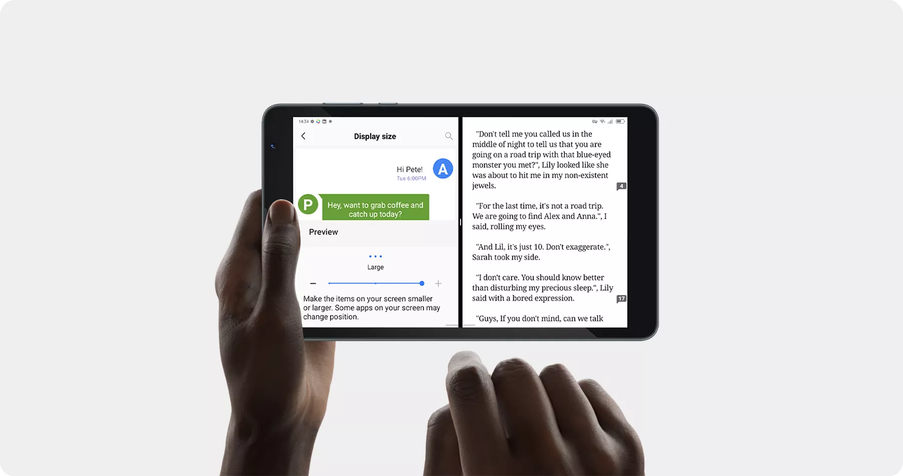 В сравнении со смартфоном, 8" экран Blackview Tab 6 лучше подходит для чтения новостей и сообщений. При слабом зрении, в настройках можно увеличить шрифт.